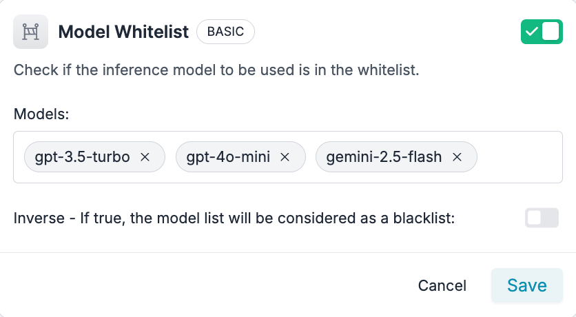 - Add a model whitelist guardrail, ensuring only approved models are used for some specific flows.