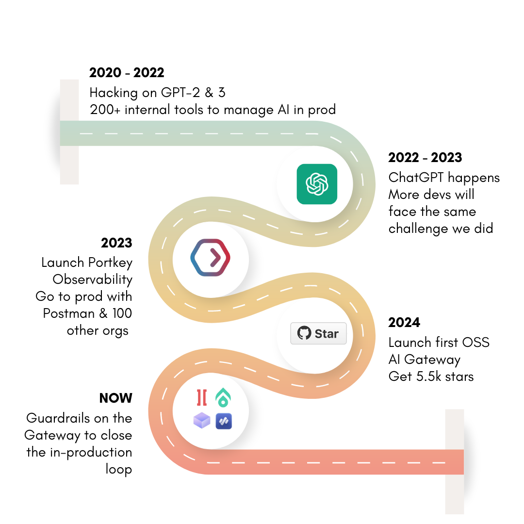 About a year ago, we started Portkey to solve a problem we had faced ourselves - lack of adequate tooling to confidently put LLM apps in production. This showed up in many ways when we experimented with GPT-2, GPT-3, and built million-user scale apps then: