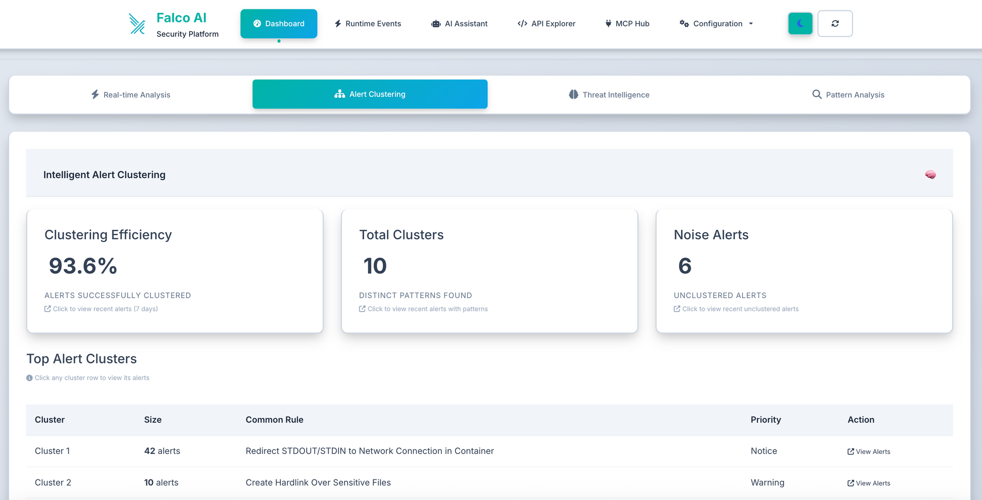- Alert Clustering: Intelligent grouping to reduce noise and identify patterns