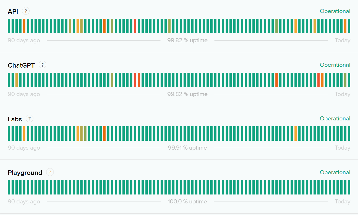 The fact that OpenAI can sustain even this uptime amidst such heavy usage is amazing. They've managed to do this with a combination of great engineering and a robust implementation of rate limits.