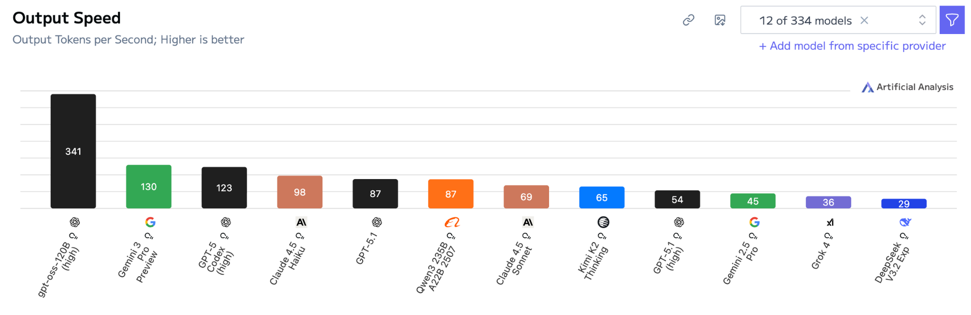 GPT-5.1 sits lower on the speed chart at 87 tokens per second. While not slow, it’s noticeably behind Gemini 3.0 and the fastest OpenAI variants. Its advantage lies more in reasoning stability than raw throughput.