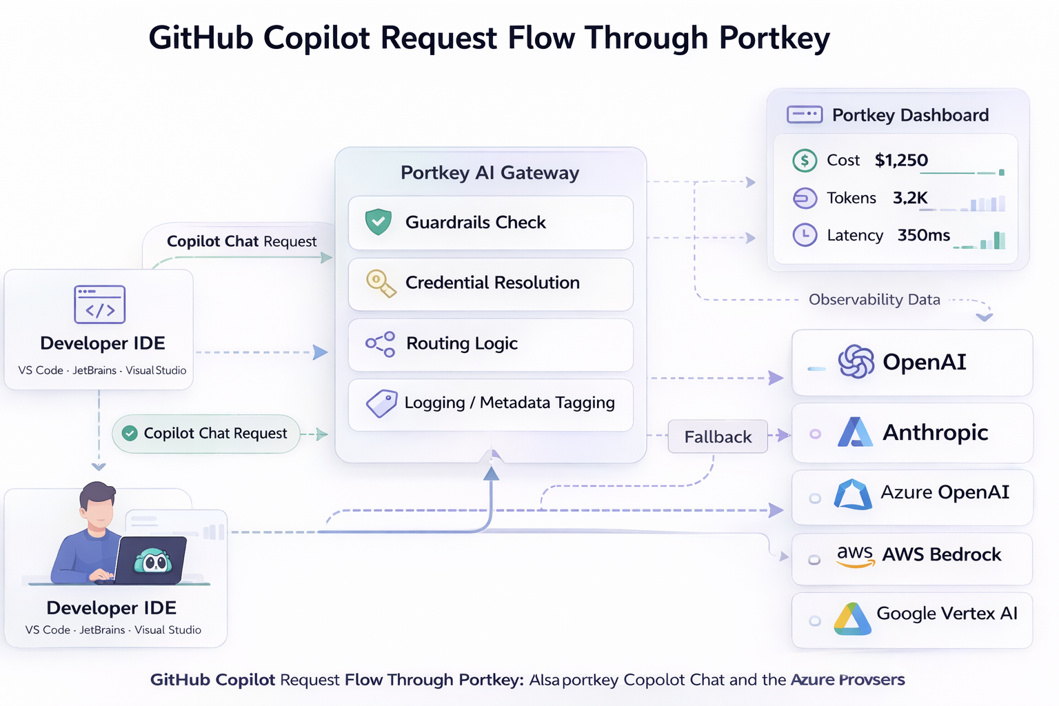 For teams already running the tool across multiple environments, a practical way to embrace GitHub Copilot best practices can be to route one team through Portkey first.
