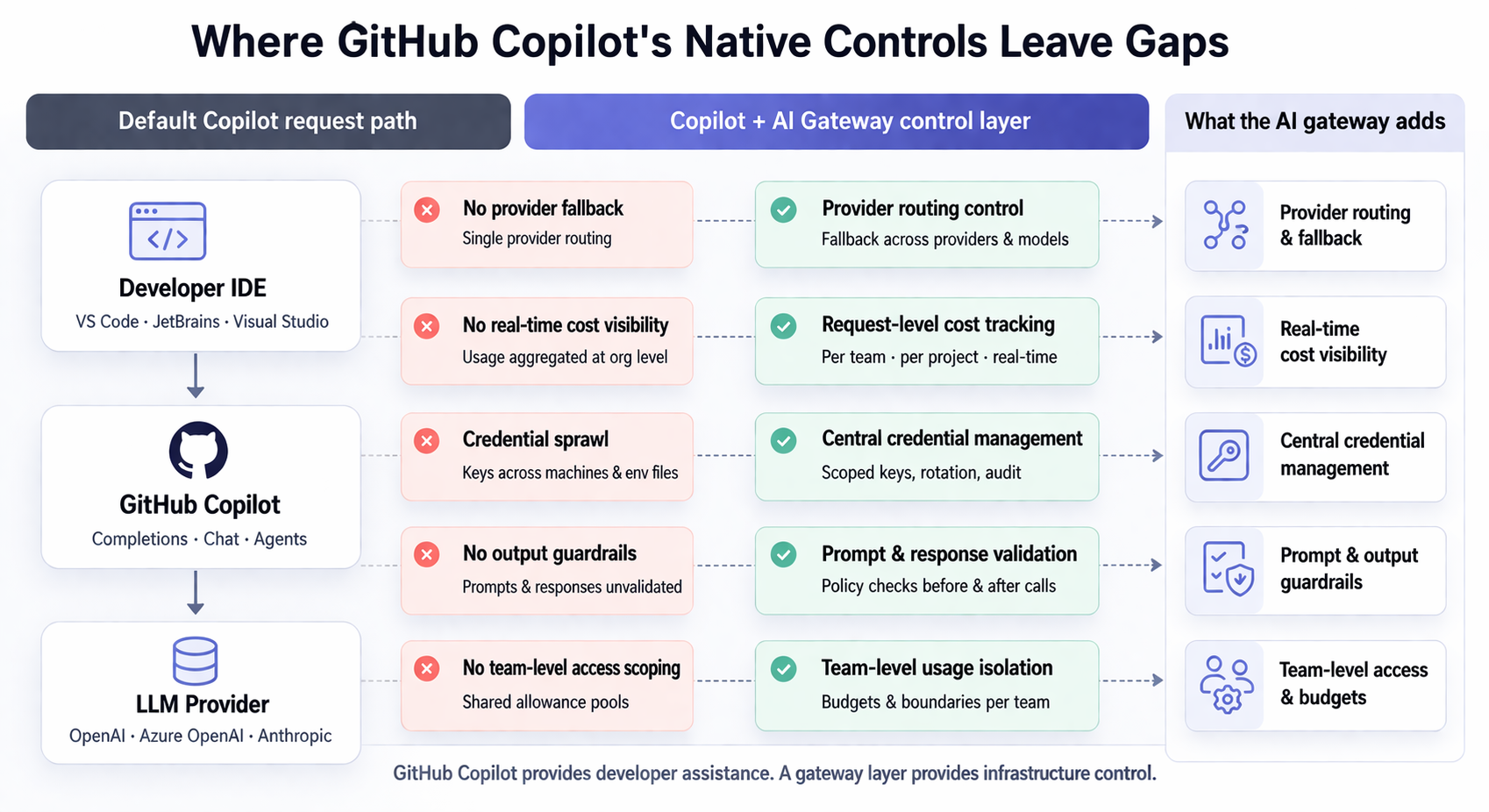 As these patterns show up across teams, the need for a control layer between GitHub Copilot and model providers becomes more apparent.