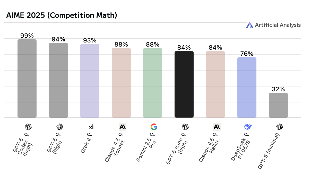GPT-5 Nano delivers solid math accuracy for its size, benefitting from the GPT-5 family’s stronger arithmetic grounding. It’s quick at producing concise answers but occasionally skips intermediate reasoning steps, which can affect reliability on multi-part problems. This makes it efficient for simple or procedural math, though less consistent on extended proofs or abstract reasoning.