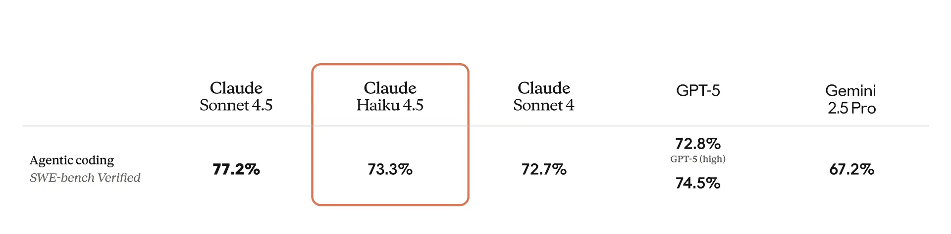 Haiku 4.5 also shows strong performance in agentic coding tasks, problems that require chaining multiple reasoning steps, invoking tools, or simulating environment interactions.