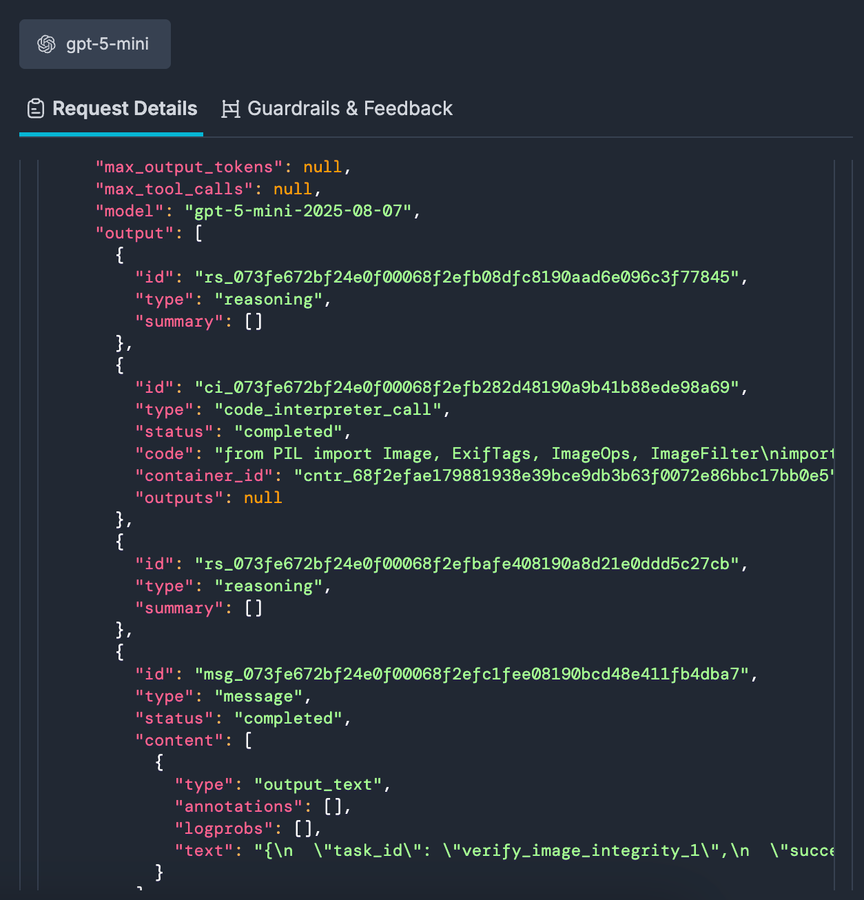 - 38 LLM calls later, the agent returns a verdict about a question we never asked