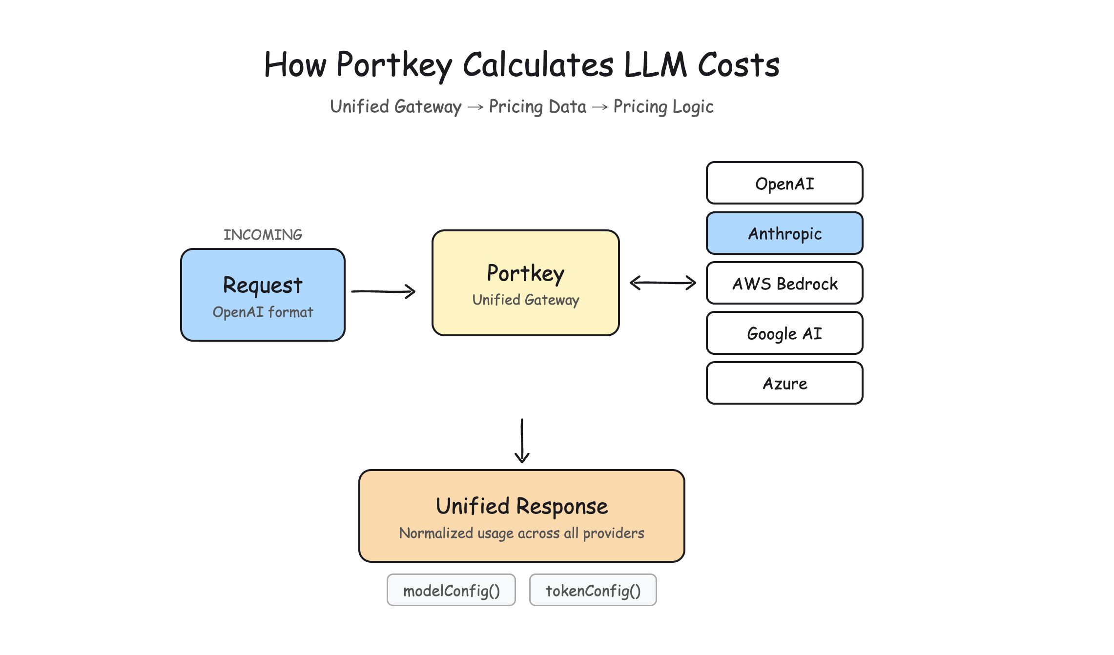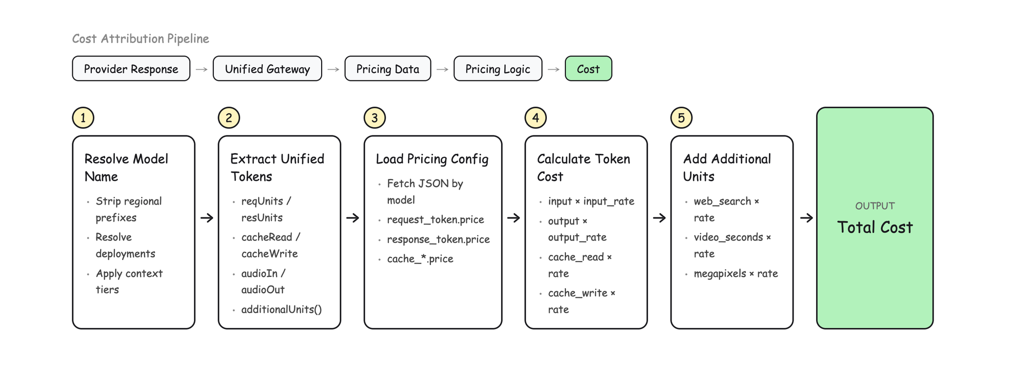 Provider Response → Unified Gateway → Pricing Data → Pricing Logic → Cost