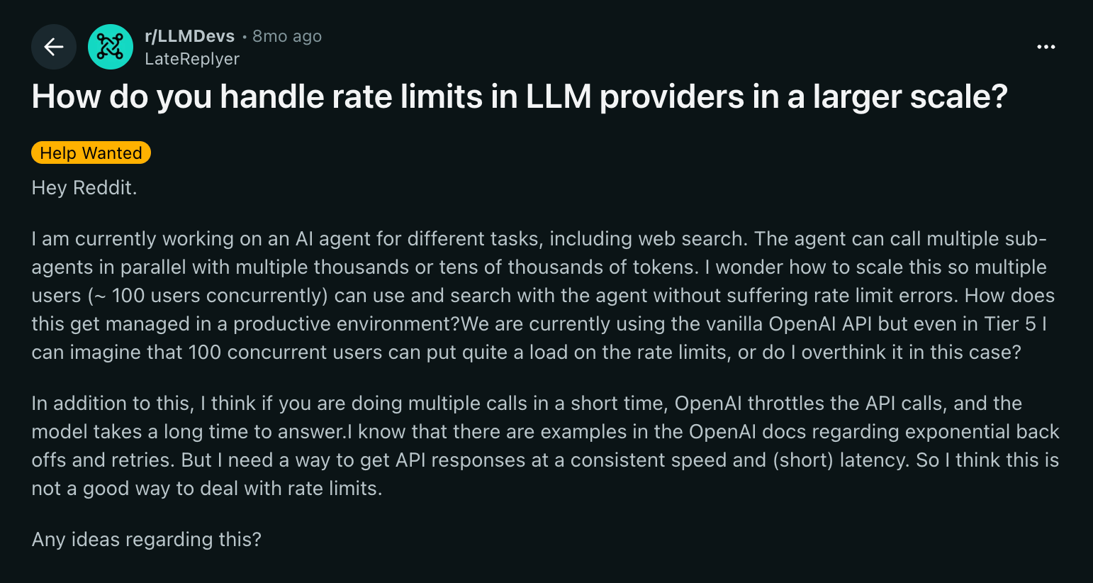 - Provider limits and cascading failures: LLM providers enforce tokens-per-minute (TPM) and requests-per-minute (RPM) limits, and exceeding these thresholds leads to throttling or 429 errors that can cascade across dependent systems.