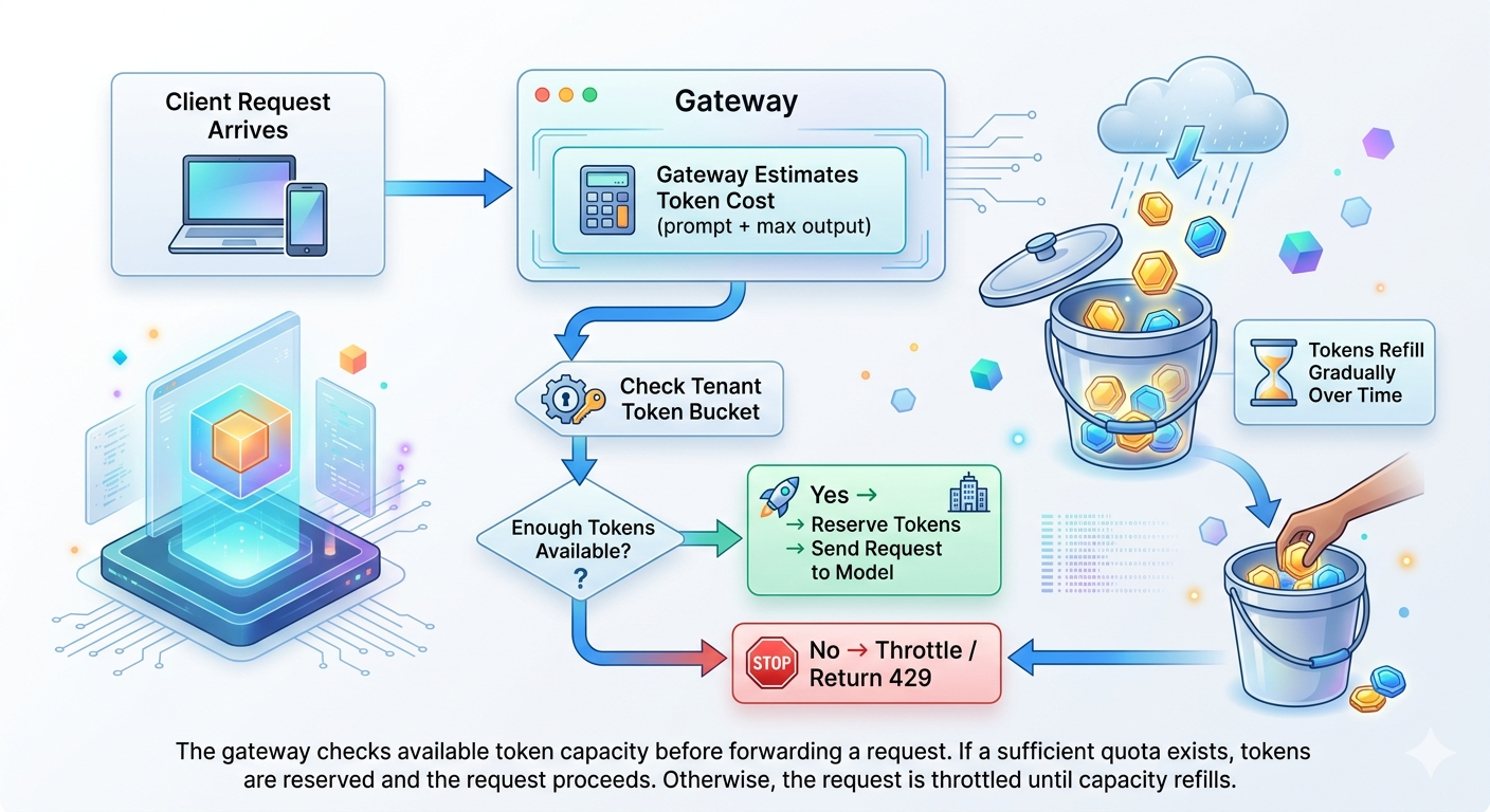 LLM workloads are far less predictable than traditional APIs. Depending on prompt length, context windows, and generated output, a single LLM request can consume thousands of tokens. Without guardrails, token consumption quickly becomes unbounded.
