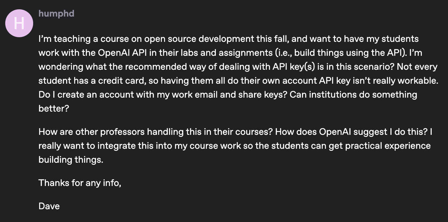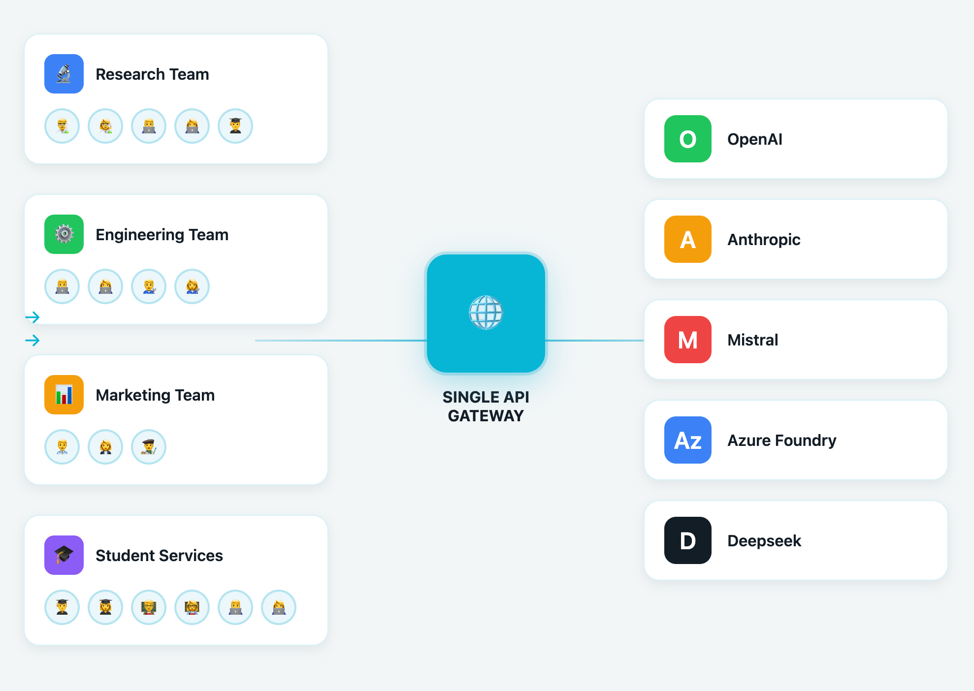 Even worse, multiple users often end up using the same keys, which makes tracking usage per user or course nearly impossible. You can’t cap usage for a single class, set a quota per student, or even estimate which department is responsible for the month’s bill. That makes cost management reactive, instead of proactive.