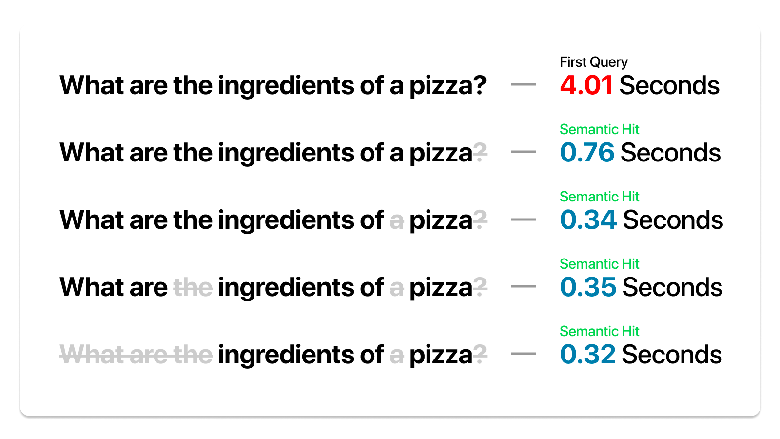 "Semantic caching has allowed us to handle tail queries with unexpected efficiency. What we anticipated might yield a 10-20% caching rate for tail queries pleasantly surprised us with a rate closer to 50%"