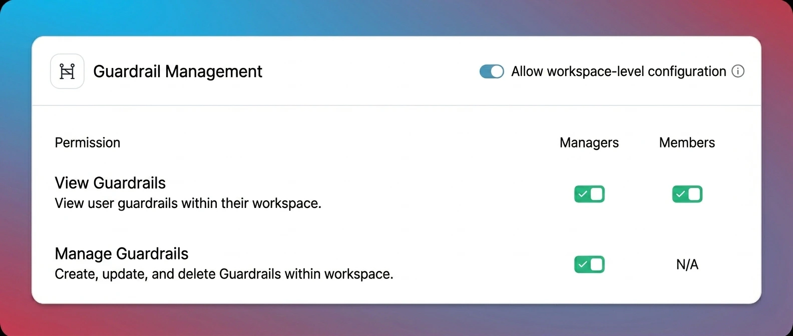 | Managers Write Guardrails | Allow workspace managers to create, update, and delete guardrails within their workspace |